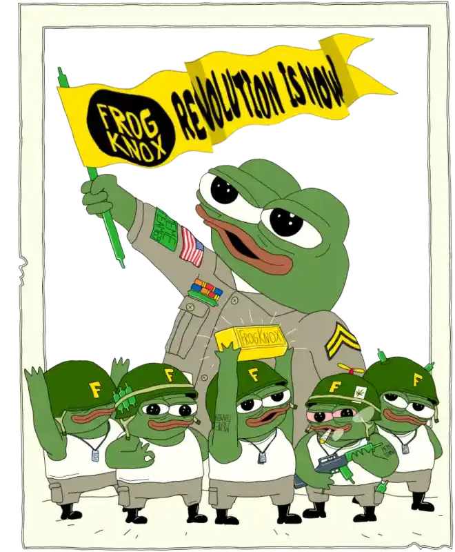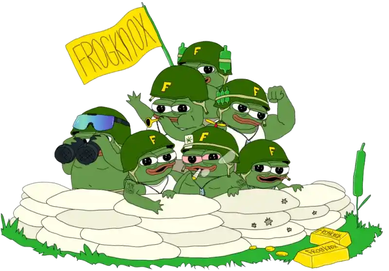 The vault of value, the reserve of realness. There’s strong, and there’s FROX strong. Dank memes, juicy rewards, and an army of diamond-handed frogs marching with force. From leaping into fresh plays, stacking gains, or vibing with the culture, Frog Knox Token is the movement. Put on a helmet and join the frog troops today—be all you can be.